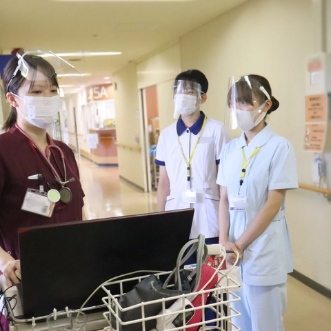院内見学や病棟での患者の清拭や検温を体験しました。先輩看護師との交流では、勉強方法や就職してからの過ごし方など、看護学生からたくさんの質問が出ていました。
