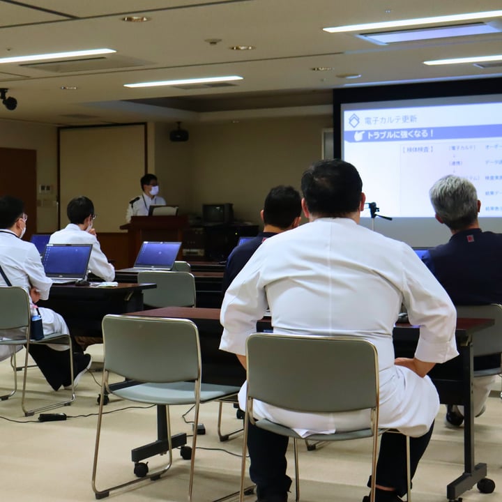 当院では、職員が日々の業務をより円滑に行えるよう、院内でテーマを定めて「業務改善研修」を継続的に開催しています。