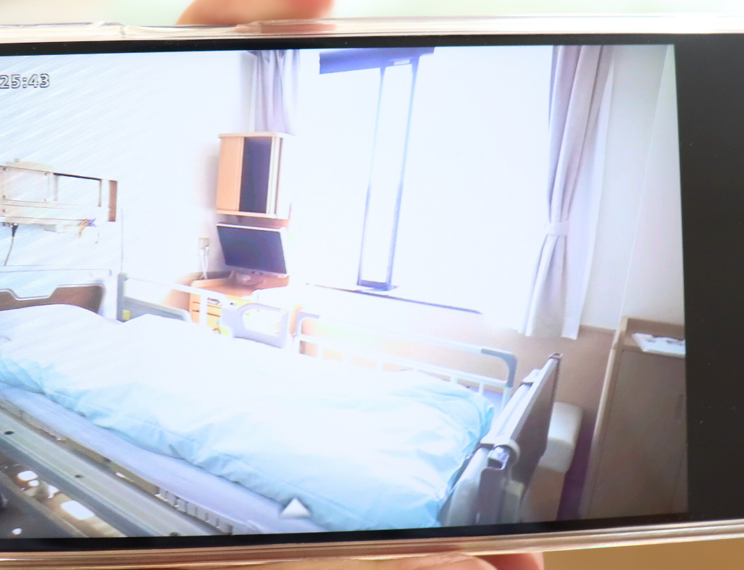 このカメラは、転倒や転落などの心配がある患者さまの安全を見守るためのものです。事前に説明し、同意をいただいた場合に限り使用しています。